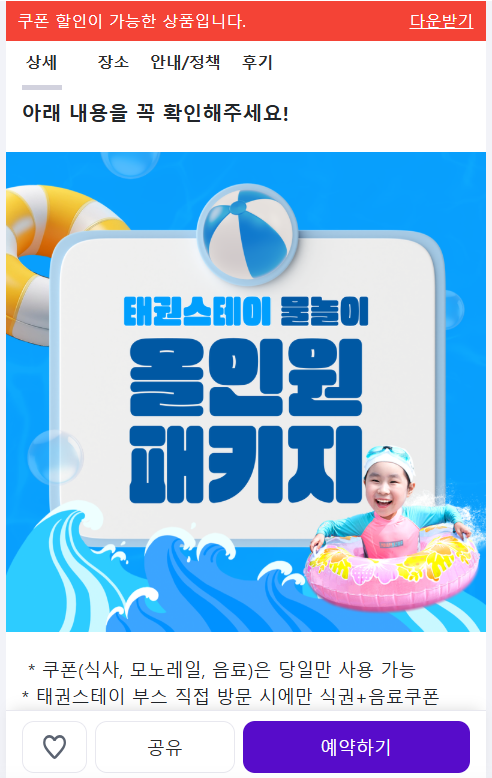 1️⃣태권스테이 물놀이 상품은 온라인 플랫폼 '노는 법'에서 예약할 수 있습니다.