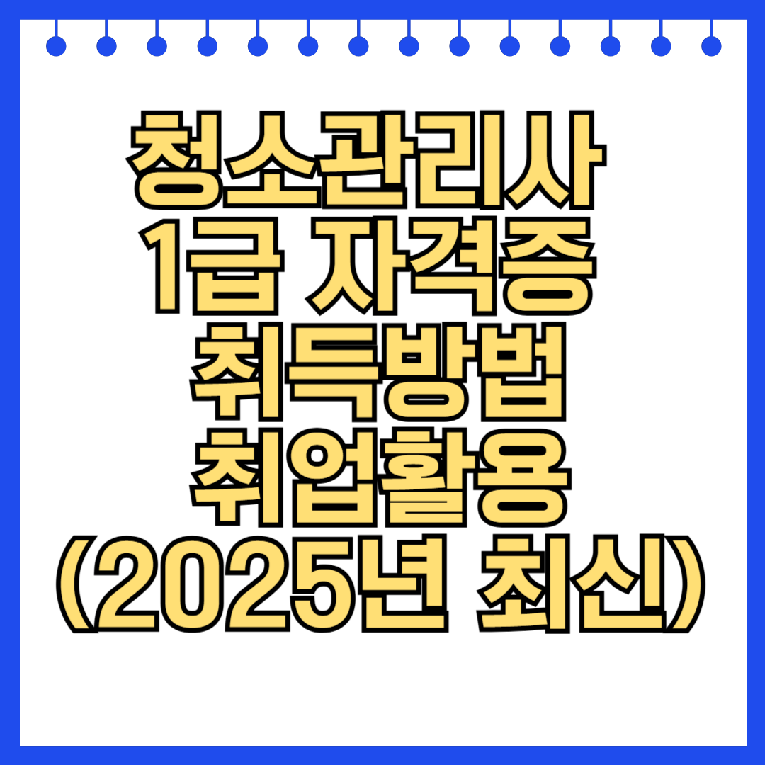 오늘은 2025년 기준으로 청소관리사 1급 자격증에 대한취득 방법, 교육 내용, 시험 정보, 그리고 실질적인 취업 활용 방법까지