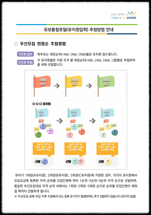 ✔ 1 지망 유치원 합격 시 나머지는 자동 제외